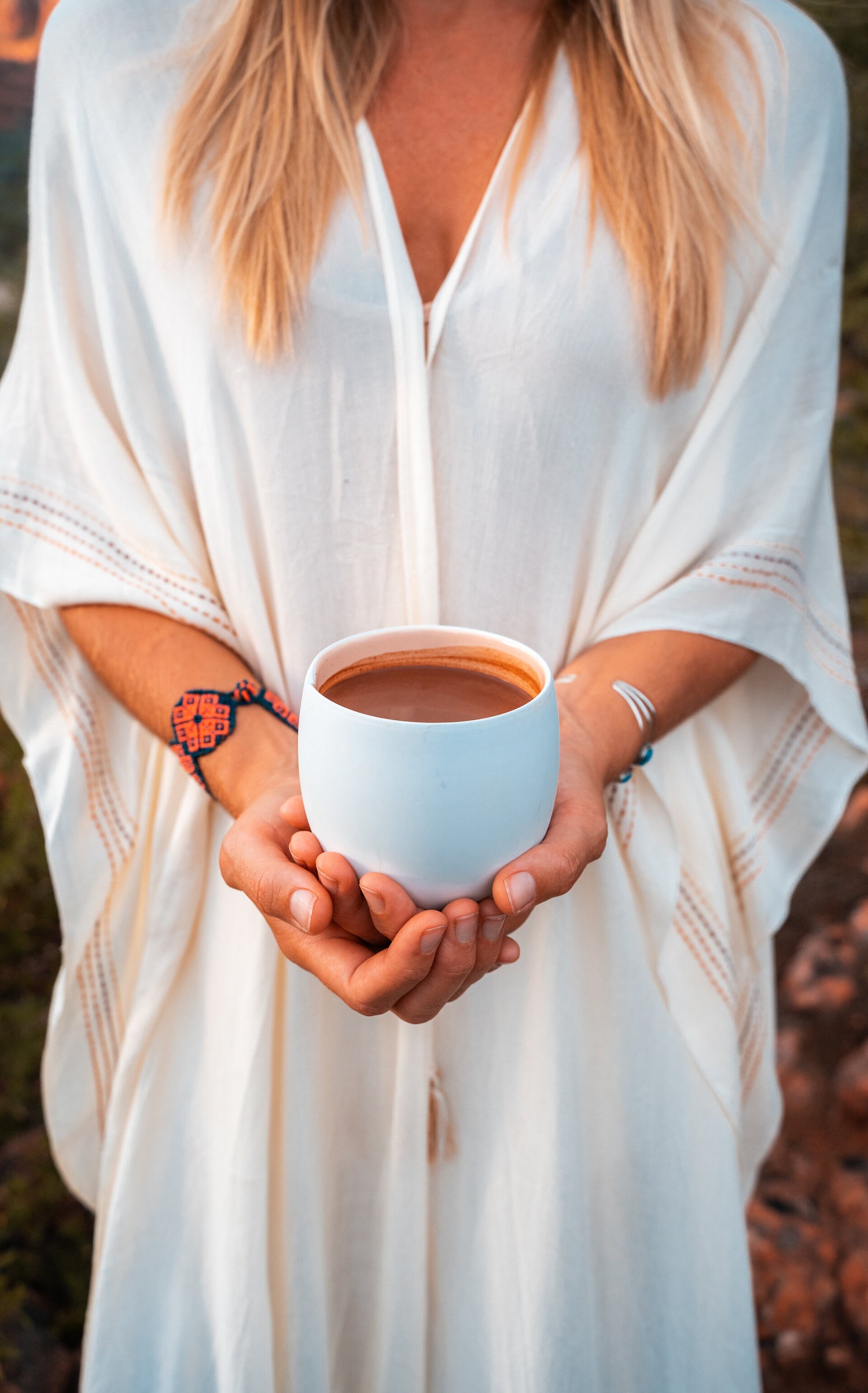 4 Organic Ingredients: Heirloom Cacao Beans, Panela, Chile, Whole Vanilla Beans. Simply blend with hot water!